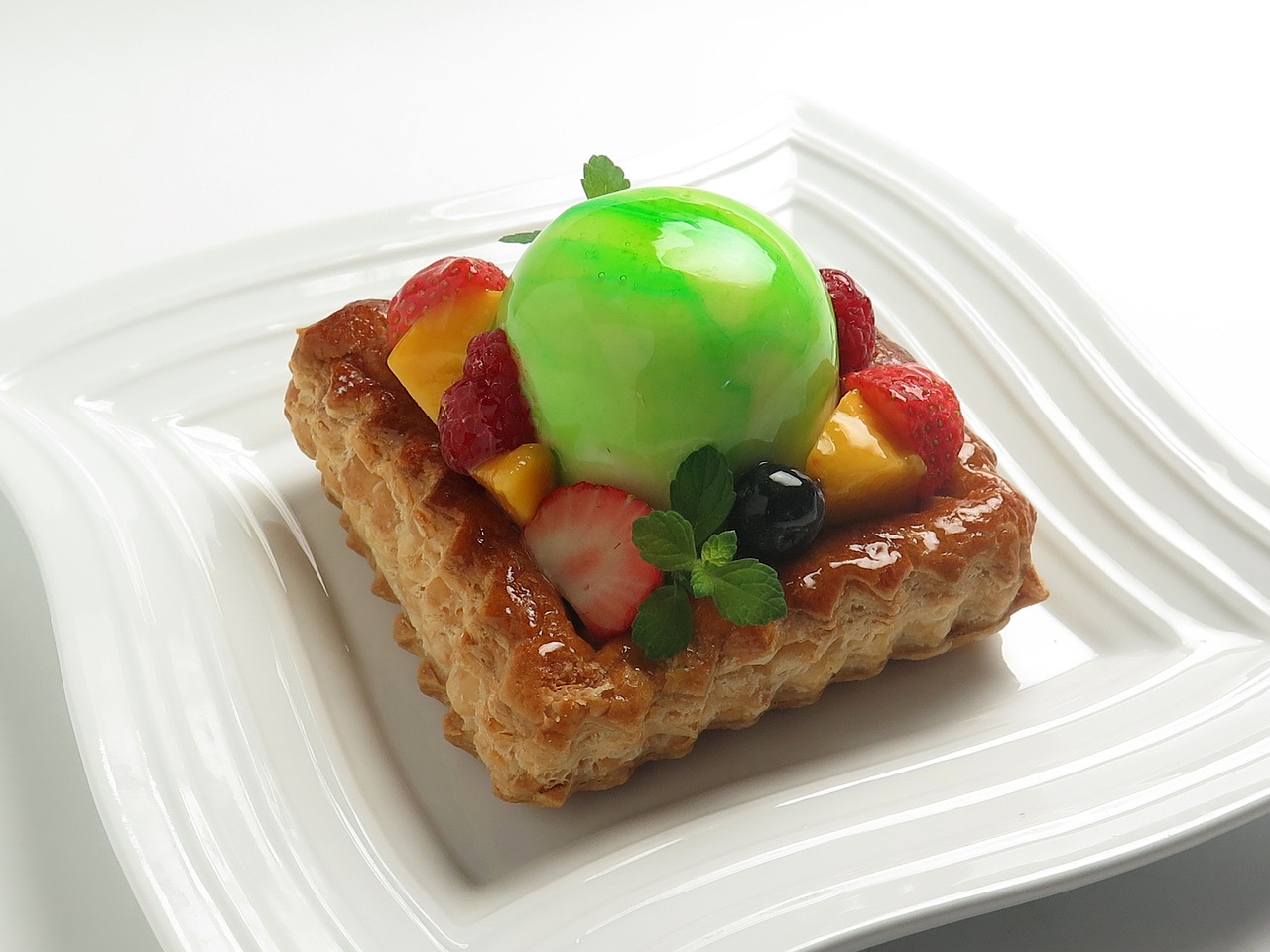 4、创意造型水果蛋糕:以独特的造型吸引人们的眼球,设计师们运用各种创意元素,将水果蛋糕打造成各种形状,如心形、动物形状、建筑形状等,注重细节处理,使每一款水果蛋糕都如同艺术品一般。